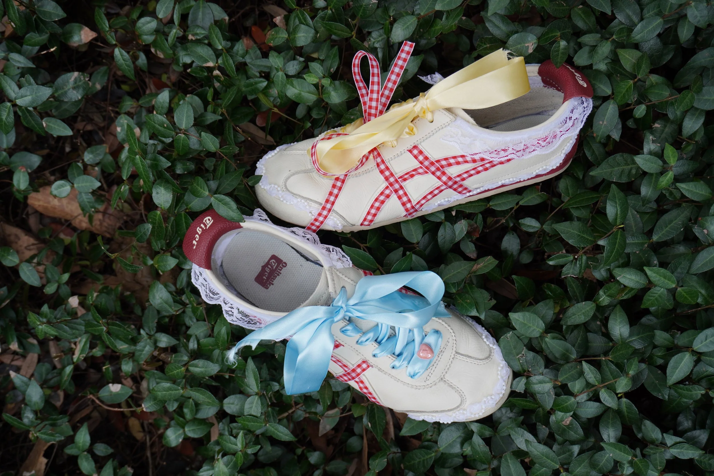 The inspiration for this collaboration stems from the recent runway shows for Spring 24, specifically the collaboration between Crocs and Simone Rocha which brought to light a new unexpected design. The combination of a shoe that many people may or may not like with this high-end designer changes the audience's perspective. With the Onitsuka Tiger and Sandy Liang collaboration, there is a hope to take a new approach to the level of feminine touch we can add to sneakers.
